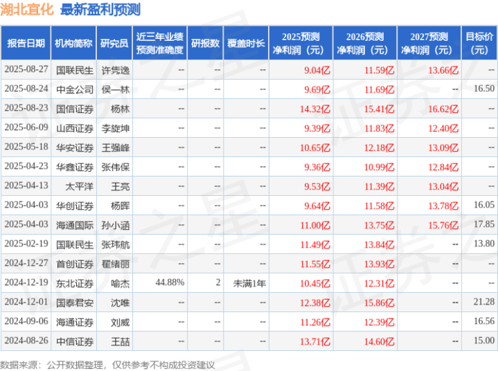 最新盈利预测明细如下: